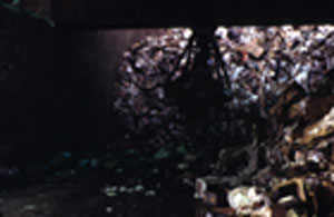 5. Trash piled high to the ceiling and extending 20 feet down to the tipping floor and 30 feet below that - all awaiting feed into the furnaces.